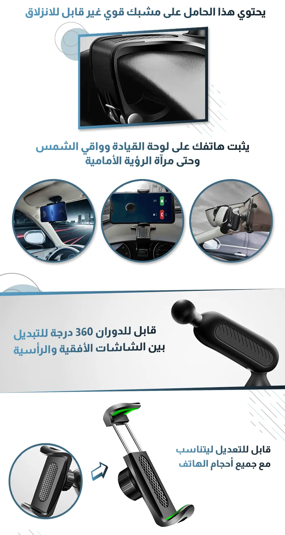 حامل هاتف على لوحة قيادة السيارة متعددة الوظائف يمكن تركيبها على لوحة القيادة, مرآة الرؤية الخلفية, قناع الشمس .. قابل للتعديل بزاوية 360 درجة